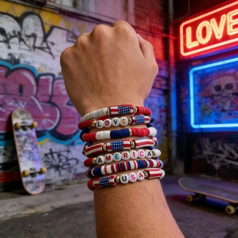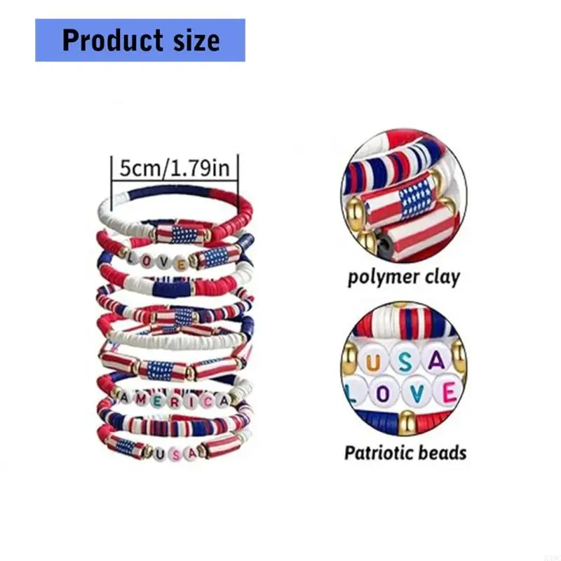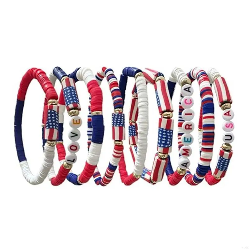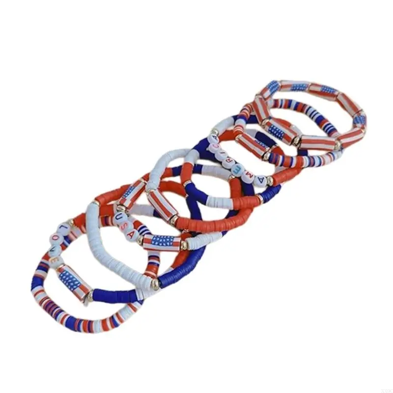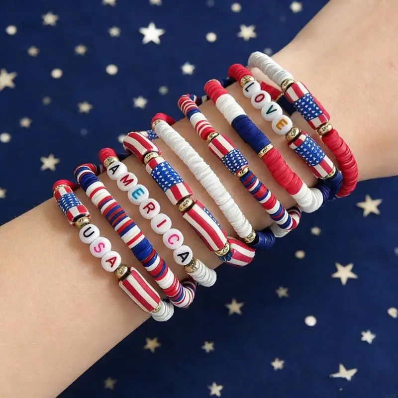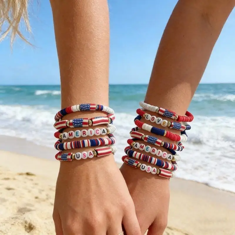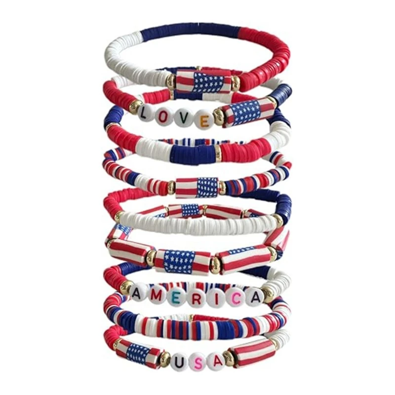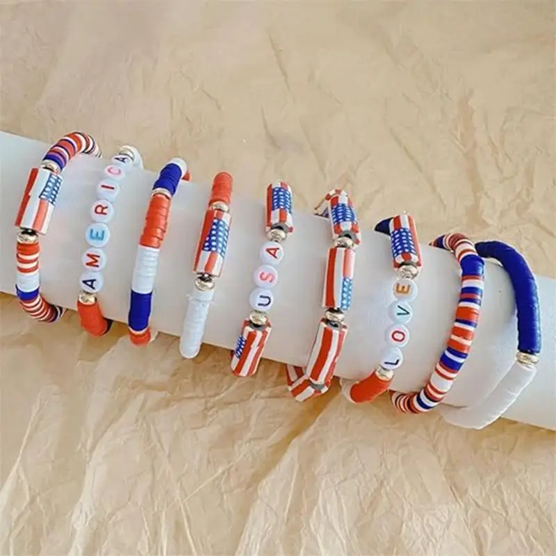 Patriotic Red White And Blue Soft Clay Bracelet Set For Independence Day XX9C