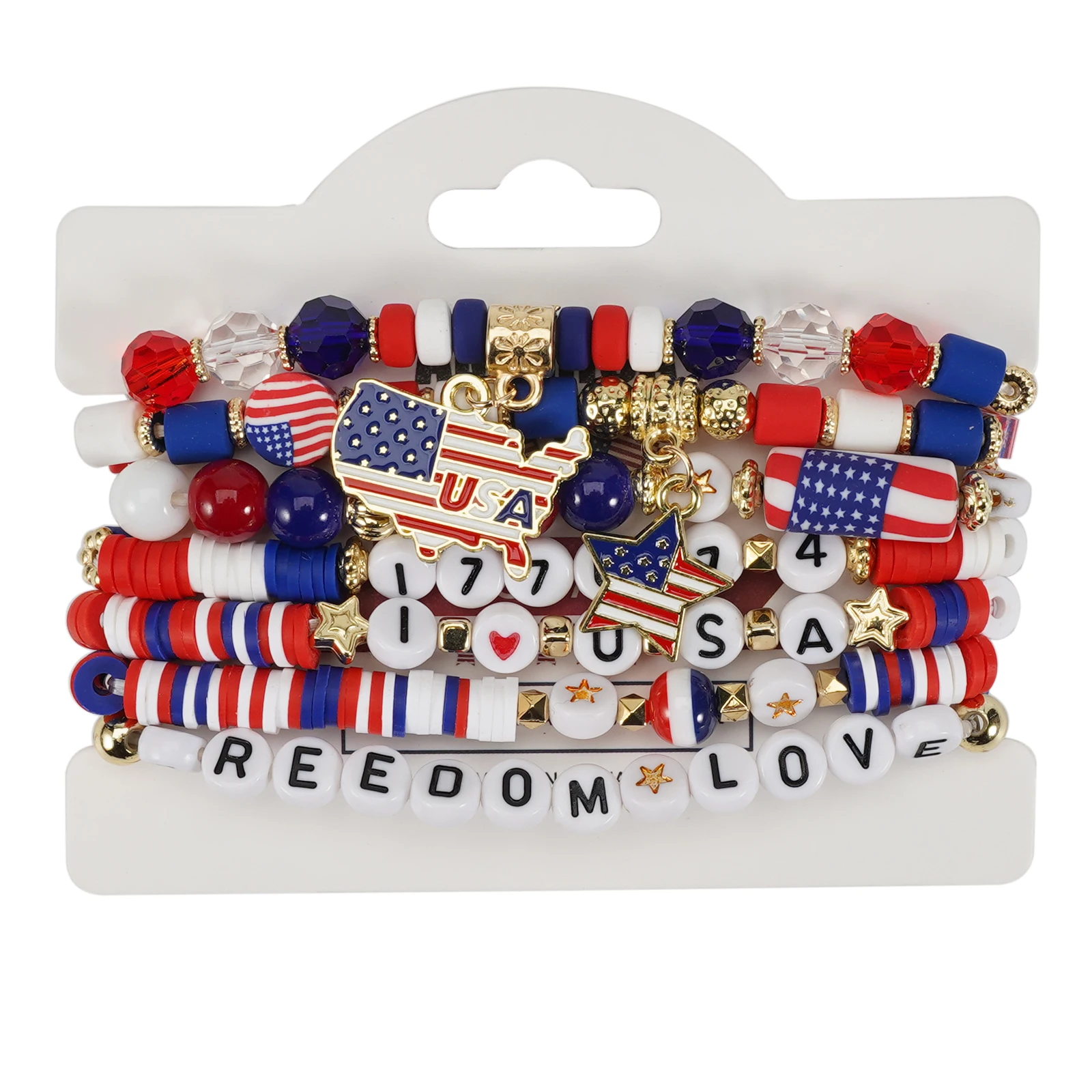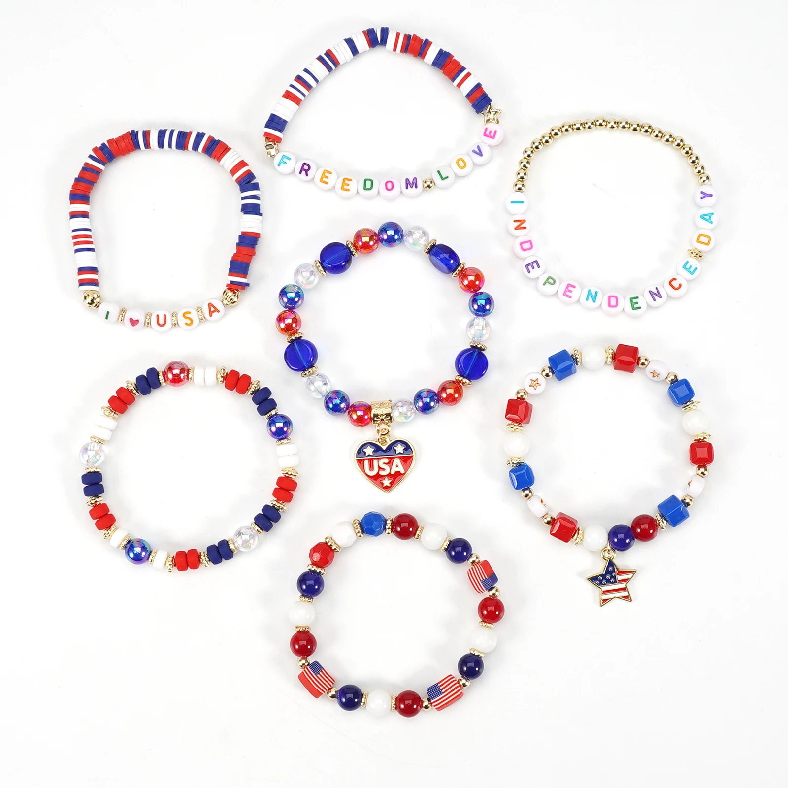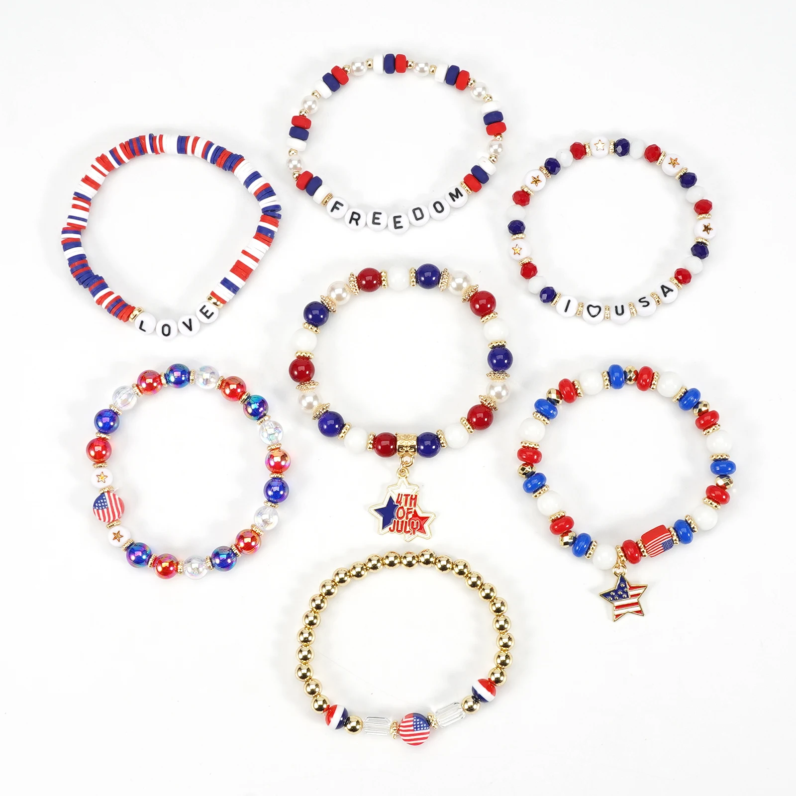USA Independence Day Bracelet American Flag Theme Jewelry for Men Women Celebratory Wristband Fashion Accessory